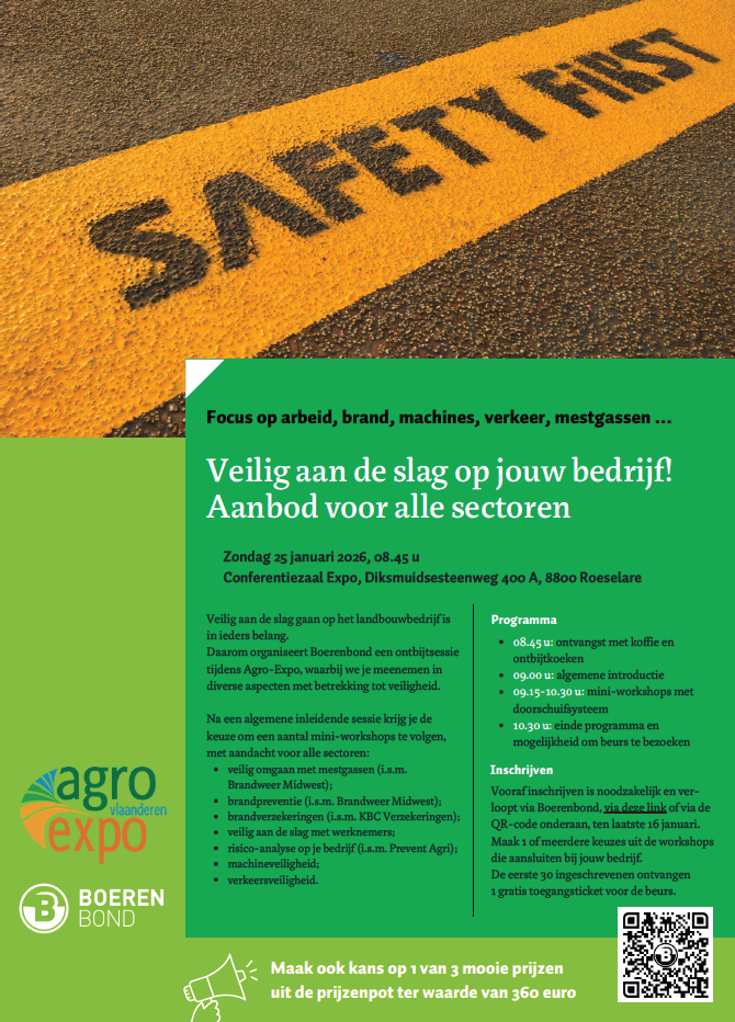 Op 19 november 2025 verzamelden zo’n 90 landbouwers in Ardooie voor een infosessie rond brandpreventie en asbest. Het initiatief kwam van de gouverneur en de dienst landbouw van West-Vlaanderen en de gemeente Ardooie, in samenwerking met Prevent Agri, Hulpverleningszone Midwest en OVAM. Met steun van Inagro en Boerenbond.