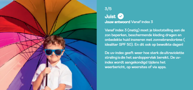 Wist je dat UV-straling in het voorjaar (april, mei en juni) al zeer sterk kan zijn, ook al voelt het nog niet zo warm aan? Hierdoor wordt het risico vaak onderschat.